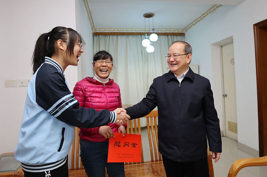 “全面小康一个都不能少。”今年春节,广西壮族自治区党委书记鹿心社来到城镇困难群众的家中,聊生活、谈工作、问困难,把党的关怀和温暖送到困难群众心窝里。鹿心社在走访过程中表示,广西各级党委、政府和有关部门要用心用情做好各项服务保障工作,妥善解决困难群众生产生活实际问题,做到不落一户、不落一人。