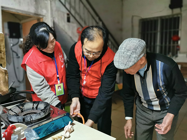 南宁市良庆区大沙田街道社区工作人员来到困难群众家中,检查燃气用气情况,叮嘱老人时刻注意用气安全。良庆区融媒体中心供图