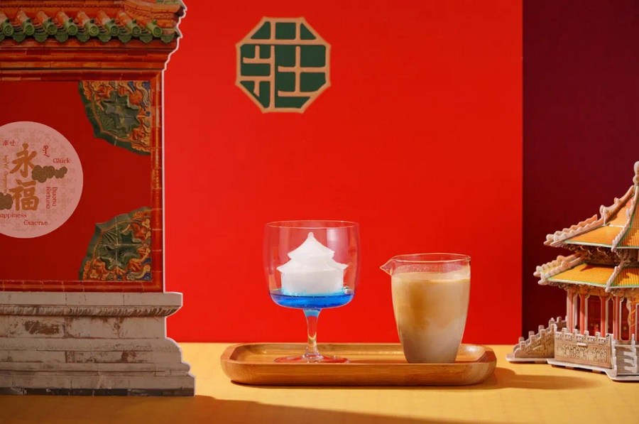 沈阳故宫斯文门外的清文化元素主题咖啡馆日前开门纳客。图片为店内推出的“网红”饮品。照片由沈阳故宫博物馆提供。