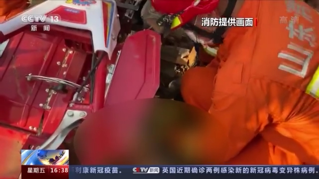 随后,消防员慢慢将卡住男子腿部的机器铁片与旋耕机主体脱离,几分钟后,男子成功脱困,随后送往医院治疗。