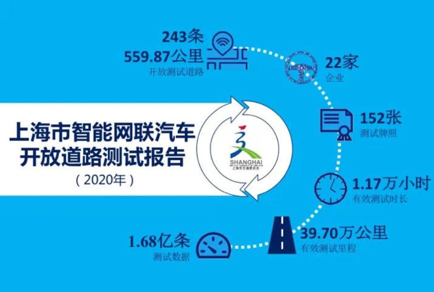 记者从上海市交通委获悉,3月11日发布的《上海市智能网联汽车开放道路测试报告(2020年)》显示,截至2020年底,上海共开放243条、559.87公里测试道路,向22家企业、152辆车颁发道路测试或示范应用资质,企业数量和牌照数量均位居全国首位。2020年上海智能网联汽车开放道路测试有效测试时长1.17万小时,有效测试里程39.7万公里。