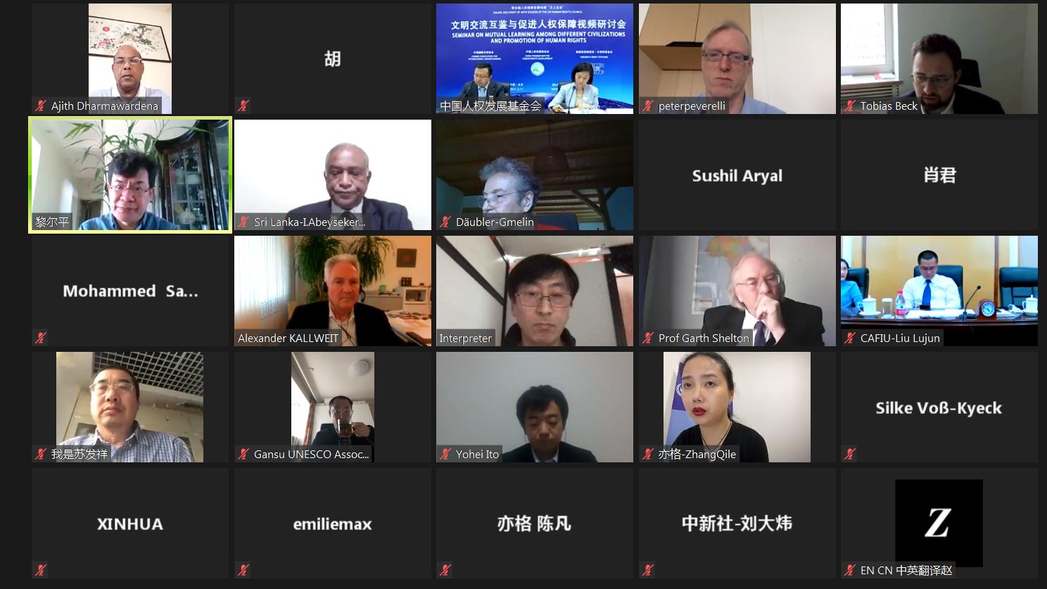 会议以线上视频形式展开,邀请了来自中国、德国、荷兰、印度、日本等国社会组织负责人、专家学者参会。在长达2个半小时的会议中,与会代表围绕“文明多样性背景下的人权理念”“文明对话增进人权共识”等议题深入研讨。