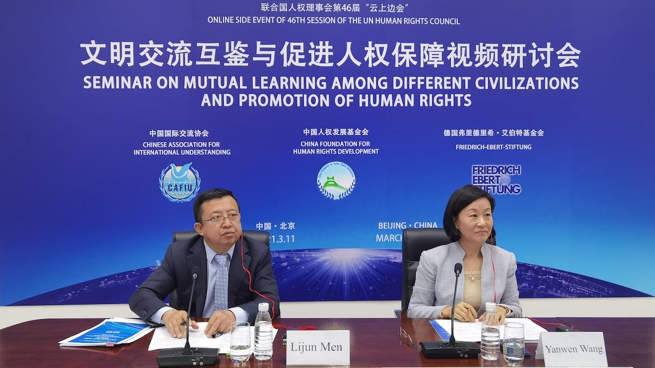3月11日,联合国人权理事会第46届会议“文明交流互鉴与促进人权保障”主题边会在北京举行。会议由中国人权发展基金会、中国国际交流协会、德国弗里德里希·艾伯特基金会共同主办。