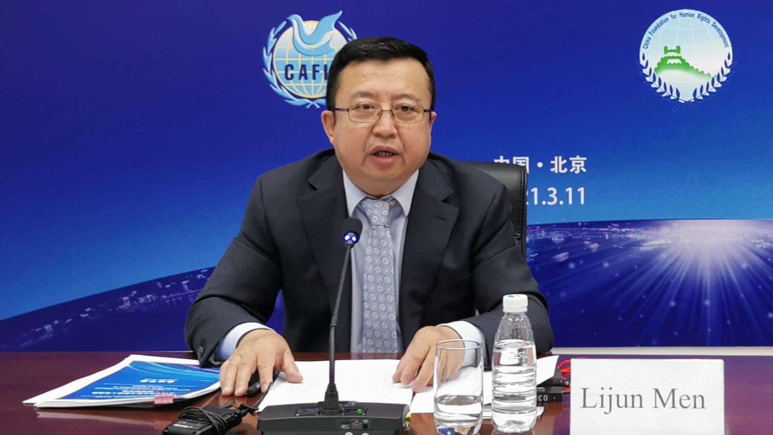 在主旨演讲中,中国人权发展基金会副理事长兼秘书长门立军指出,疫情在全球范围内暴露了一些消极因素,比如,民粹主义、保护主义有所上升,种族主义和排外主义进一步抬头,不利于国际社会的团结合作,不利于共同促进和保护人权。