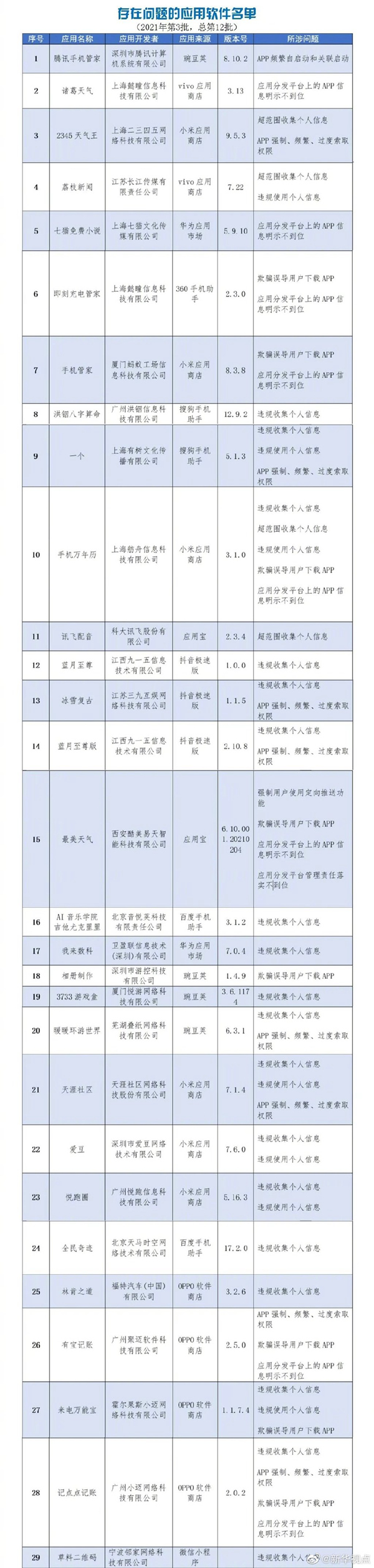 工信部12日通报,根据第三方检测机构对手机应用软件检查,截至目前,仍有腾讯手机管家等136款App存在侵害用户权益行为且未完成整改。工信部要求这些App在3月17日前完成整改落实工作。逾期不整改的,将依法依规组织开展相关处置工作。