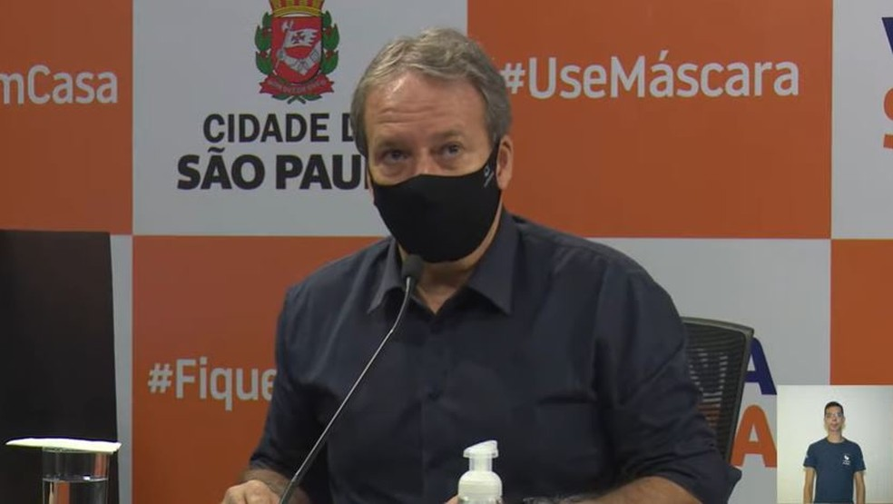 △圣保罗市卫生厅厅长埃德森·阿帕雷基多在发布会上公布检测结果 来源:圣保罗市政府