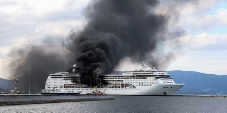 据当地媒体报道,大火从这艘名为利利卡(MSC Lirica)的邮轮右舷甲板上方的两艘救生艇燃起。随即就火舌就烧进了船舱,一时间邮轮上空浓烟滚滚。所幸船上的51名船员迅速撤离了现场。