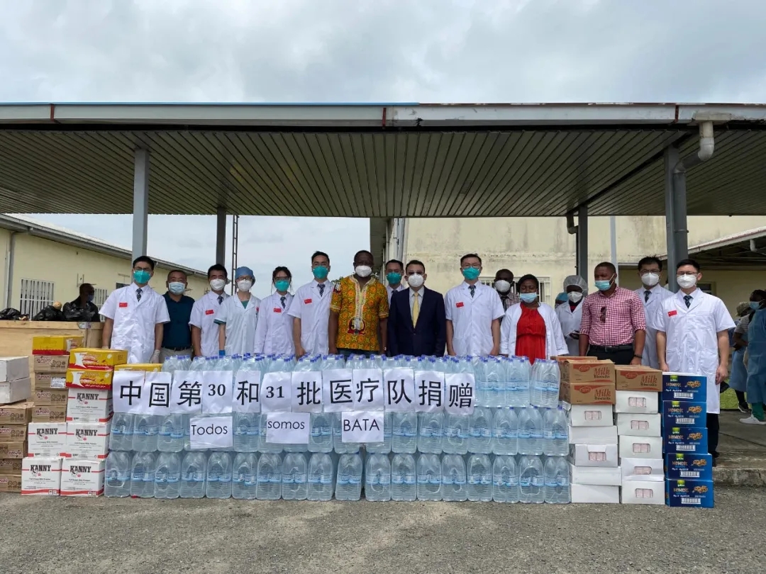 当地时间3月11日,中国第31批援赤道几内亚医疗队和刚刚结束援非使命回国的第30批医疗队联合行动,在马拉博和巴塔两地分别向赤道几内亚卫生与社会福利部和巴塔医院紧急捐赠医用外科口罩、护目镜、面屏和隔离服等医用应急物资,以及牛奶、矿泉水、面包、鸡蛋和饼干等生活物资,用于协助赤道几内亚救治巴塔军火库爆炸事故伤员,安置事故受难民众。