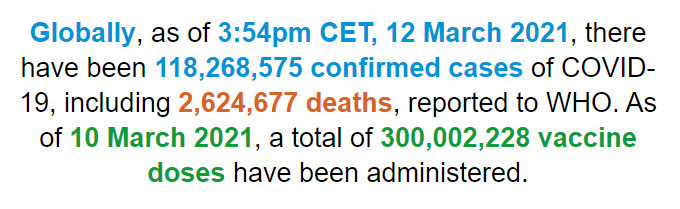 截至3月12日,全球新冠肺炎确诊病例已达1.183亿例,在多国发现的变异新冠病毒给防疫工作增加了新的挑战。