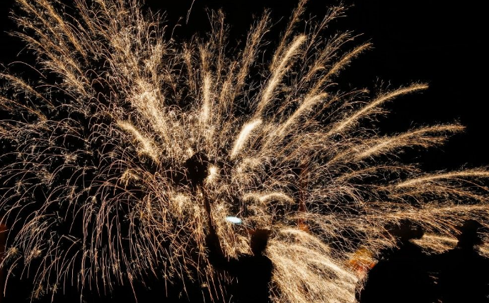 河南宝丰上演非遗“打铁花”,艺人们将铁汁抛起用力击向天空,流光溢彩的“铁花”犹如烟花绽放夜空,美不胜收。