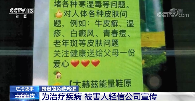 ·央视揭免费领鸡蛋骗局:吸引老人进群购买其产品,60元“太赫兹能量鞋”卖1388元,宣称可治疗百病,黑谷粉成了航天专供。