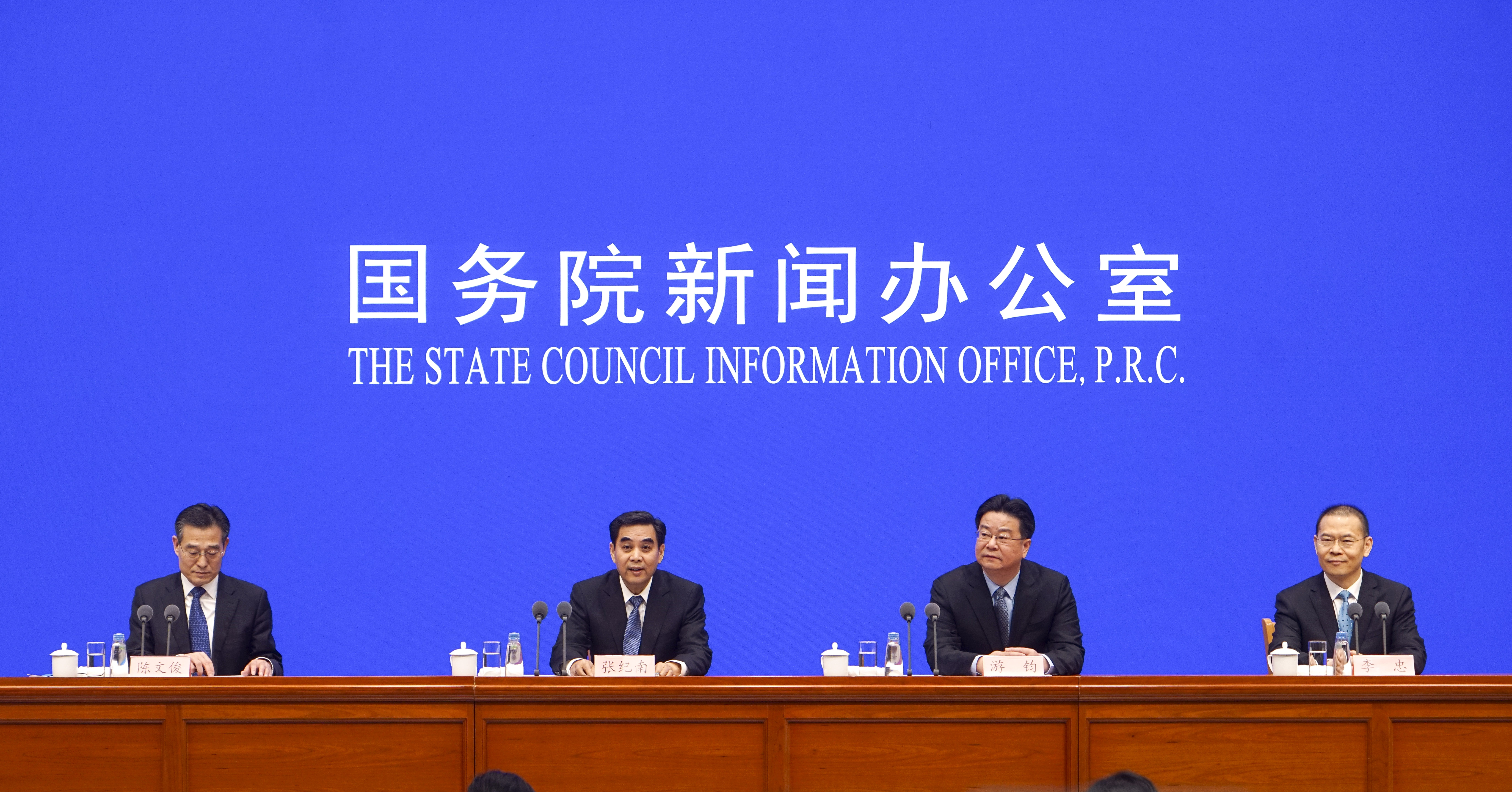 2月26日,国务院新闻办公室举行新闻发布会。人力资源和社会保障部副部长游钧(右二)在会上透露,人社部正在会同相关部门研究延迟退休具体的改革方案。 新华社记者殷刚摄