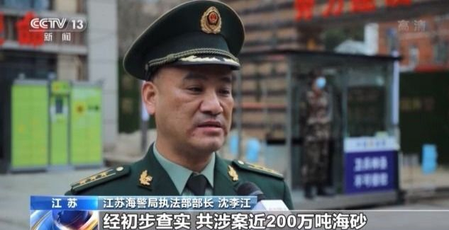 江苏海警局执法部部长 沈李江:经初步查实,共涉案近200万吨海砂,案值近亿元。目前我们协同苏州市公安机关,对案件正在进一步审查之中。