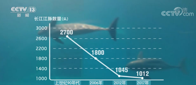 中国科学院水生生物研究所研究员王丁介绍说,在上世纪90年代,对长江江豚数量的估计是在2700头左右,到2006年下降到1800头左右,2012年考察的结果是1045头左右,2017年是1012头左右。
