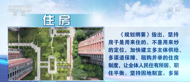再来看住房。《规划纲要》指出,坚持房子是用来住的、不是用来炒的定位,加快建立多主体供给、多渠道保障、租购并举的住房制度,让全体人民住有所居、职住平衡。坚持因地制宜、多策并举,夯实城市政府主体责任,稳定地价、房价和预期。建立住房和土地联动机制,加强房地产金融调控,发挥住房税收调节作用,支持合理自住需求,遏制投资投机性需求。加快培育和发展住房租赁市场,有效盘活存量住房资源,有力有序扩大城市租赁住房供给,完善长租房政策,逐步使租购住房在享受公共服务上具有同等权利。