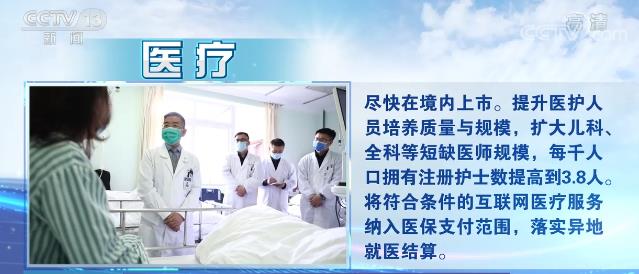 有关医疗。《规划纲要》强调,完善创新药物、疫苗、医疗器械等快速审评审批机制,加快临床急需和罕见病治疗药品、医疗器械审评审批,促进临床急需境外已上市新药和医疗器械尽快在境内上市。提升医护人员培养质量与规模,扩大儿科、全科等短缺医师规模,每千人口拥有注册护士数提高到3.8人。将符合条件的互联网医疗服务纳入医保支付范围,落实异地就医结算。