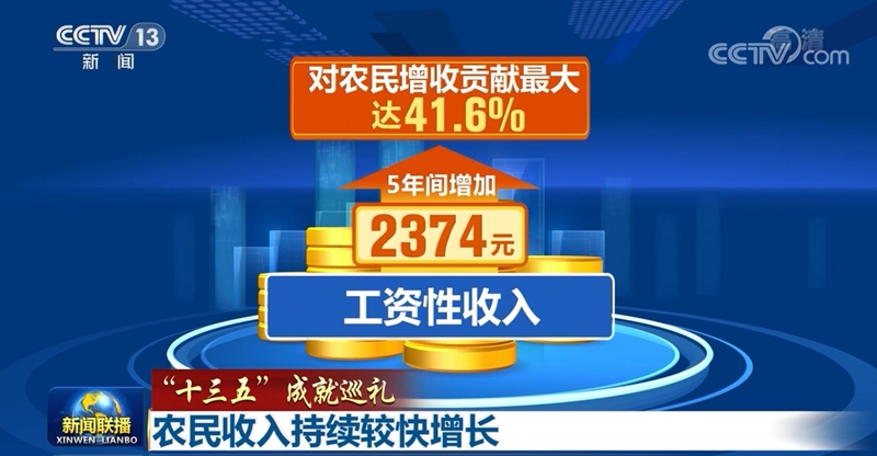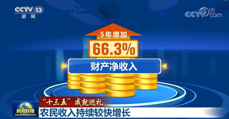 从财产收入看,农村改革红利持续释放,带动财产净收入快速增长,5年增加66.3%,成为农民增收新亮点。