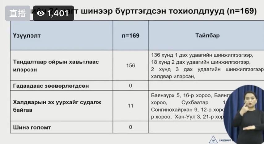 当日上午11时,蒙古国卫生部通报,过去24小时,蒙古国新增169例新冠肺炎确诊病例,均源自首都乌兰巴托地区。这是自疫情发生以来,蒙古国单日新增确诊病例数的最高纪录。至此,该国确诊病例总数已增至3833例,累计治愈2955例,累计死亡8例。