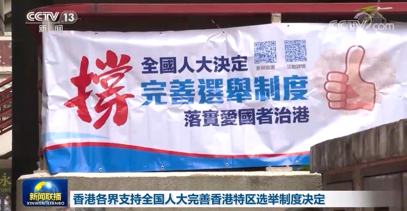 央视网消息(新闻联播):连日来,香港各界人士持续发声,表示坚定支持全国人大完善香港特区选举制度,落实“爱国者治港”原则是坚持和完善“一国两制”制度体系、确保香港长治久安的必要之举。