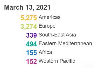 根据世卫组织最新实时统计数据,截至欧洲中部时间3月13日14时10分(北京时间3月13日21时10分),全球累计新冠肺炎确诊病例118754336例,累计死亡病例2634370例。3月13日全球新冠肺炎确诊病例新增492351例,死亡病例新增9689例。(总台记者 朱赫)