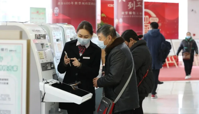 △今年1月,江苏扬州,银行工作人员协助群众领取养老金
