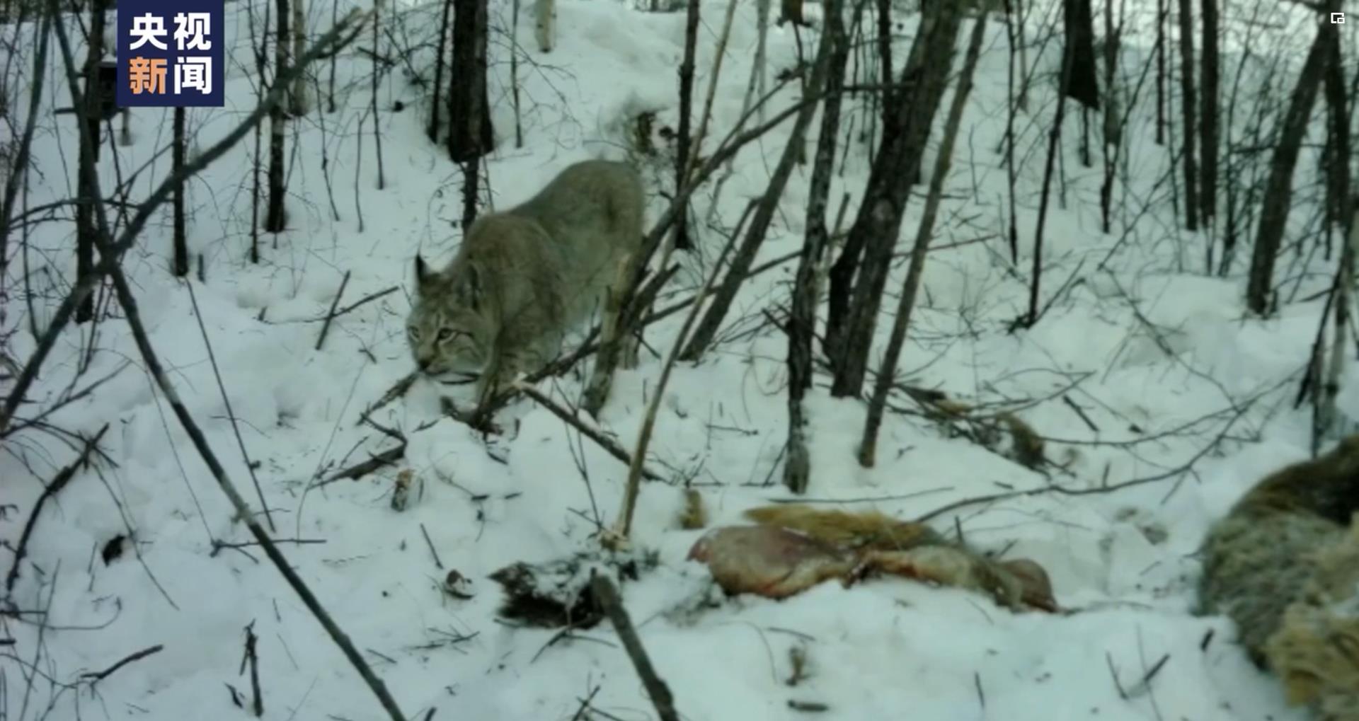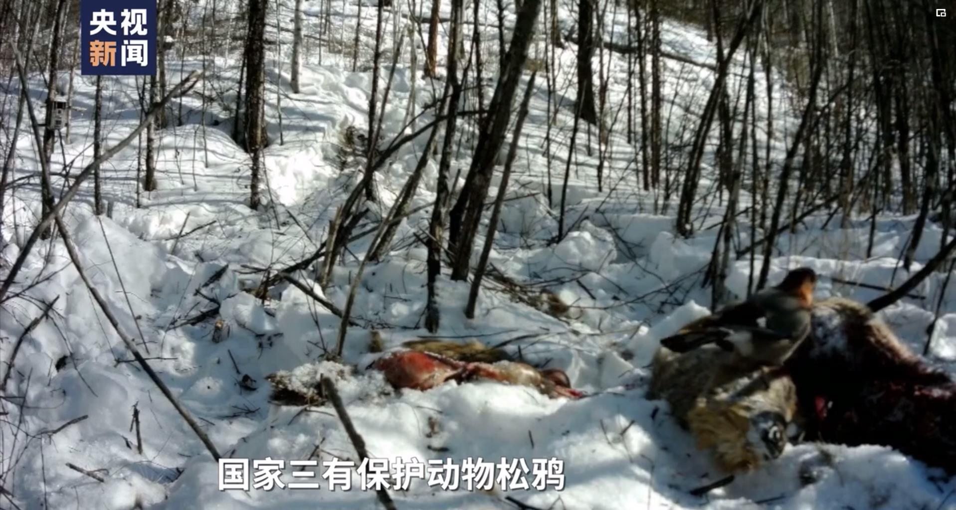黑龙江呼中国家级自然保护区工作人员近日深入保护区布置红外相机时,发现了一只被捕食而亡的狍子。工作人员就近布置红外相机后,分别捕捉到国家一级保护动物貂熊、二级保护动物猞猁及三有保护动物松鸦进食画面。