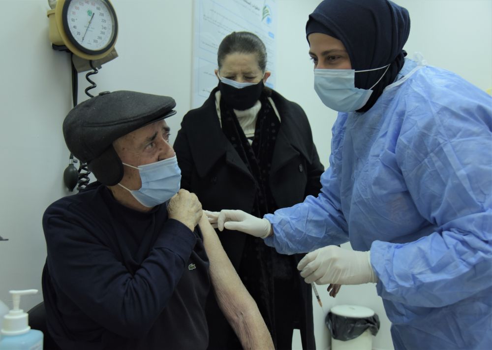 3月12日,一名老人在黎巴嫩的黎波里接种新冠疫苗。(新华社发,哈立德摄)