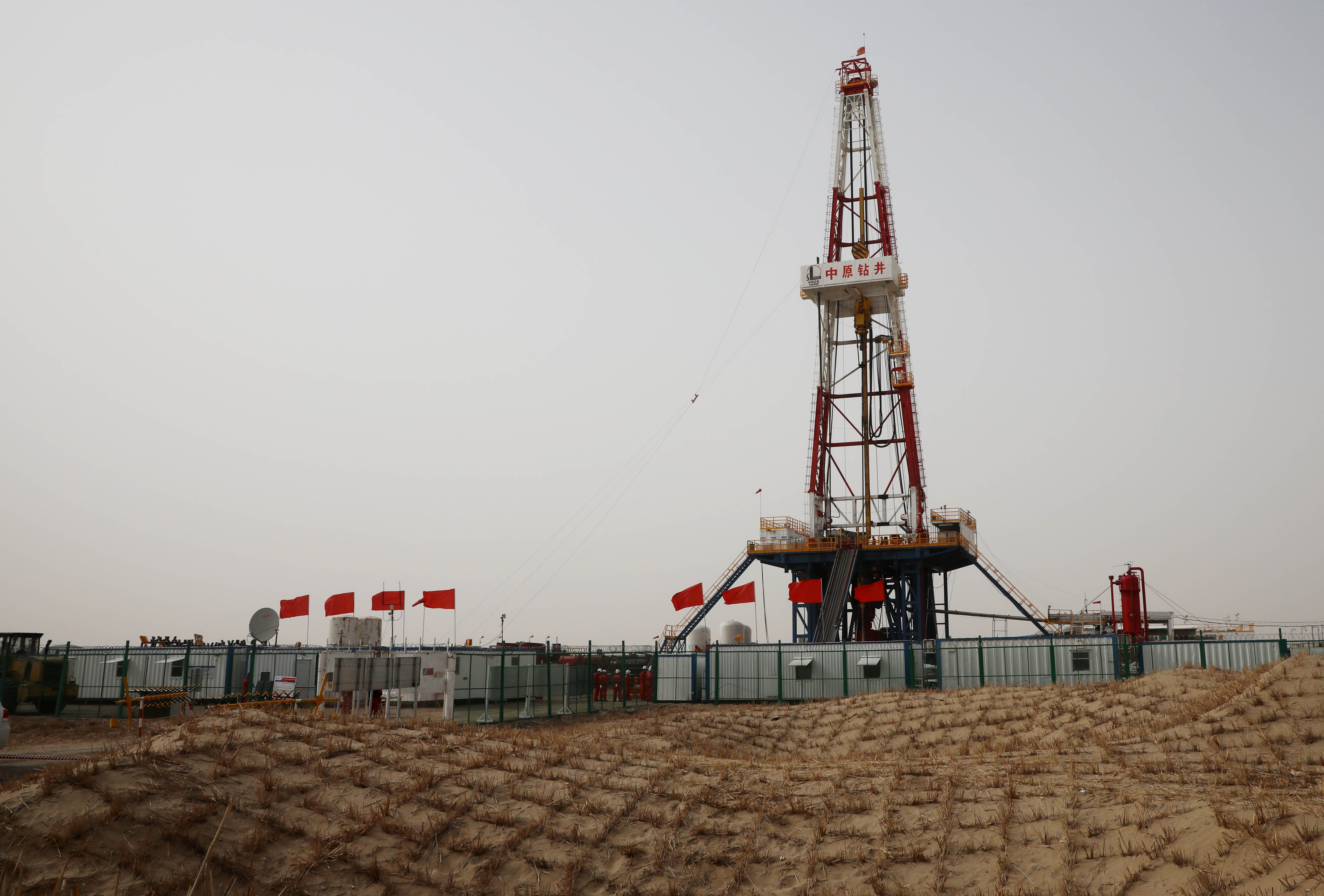 ↑中国石化西北油田的顺北42X井(西北油田供图,张俊 摄)
