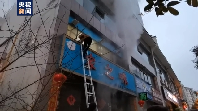 由于楼层较低,为了自救,被困群众砸开二楼玻璃,一名男子从二楼跳了下来。附近的安保人员和居民找来梯子,架设在餐馆二楼的窗户前面,一名男子和一名女子相继从餐馆的二楼窗户爬出。随后公安、消防人员抵达现场,扑灭了大火。因为撤离救援及时,没有人员受伤。目前,起火的具体原因正在调查中。