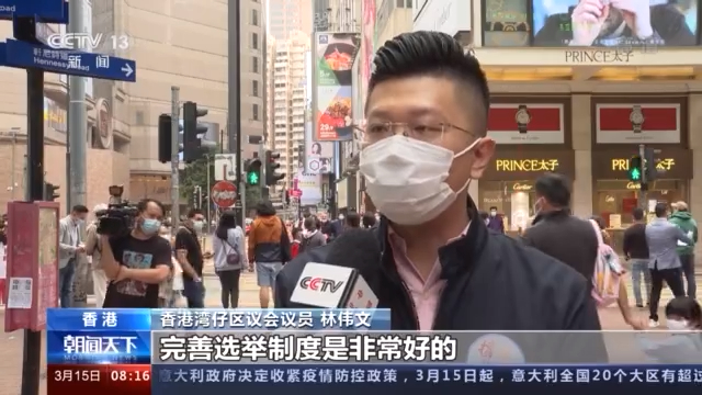 香港湾仔区议会议员 林伟文:完善选举制度是非常好的,因为这样子对我们香港社会环境会比较平稳一点。只要你是爱国爱港的人,都可以去选举,每一个国家都是这样子,不会有一个国家选一个不爱自己国家的人的。
