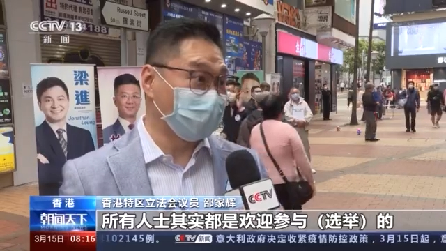 香港特区立法会议员 邵家辉:对于这一次国家落实的“爱国者治港”,很多香港市民都是非常欣喜的,只要他们是真心爱国,继续真心为香港服务的话,所有人士其实都是欢迎参与(选举)的。
