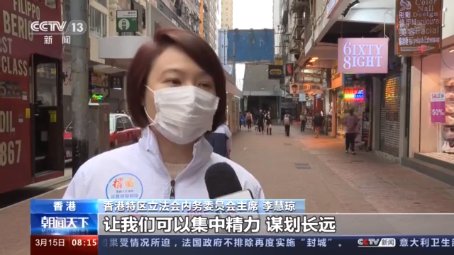 香港特区立法会内务委员会主席 李慧琼:我对完善选举制度落实后,第一是对“一国两制”行稳致远充满信心,议会变得恢复健康、恢复理性、恢复务实,让我们可以集中精力,谋划长远,发展经济,改善民生。我们继续要保持香港作为金融中心,还有就是要抓紧融入国家发展大局,积极投入大湾区的建设。