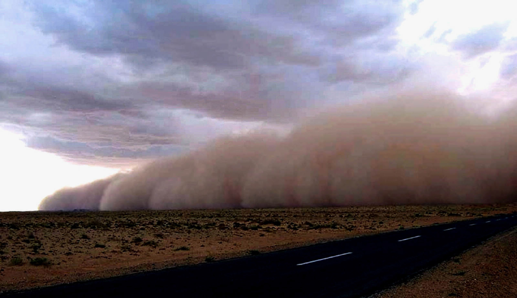 图为内蒙古阿拉善盟阿拉善右旗到阿拉善左旗的公路上刮起沙尘暴(2006年5月4日摄)。新华社记者李欣摄