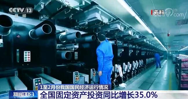 先从经济发展动力看,1—2月份,固定资产投资稳定增长,全国固定资产投资(不含农户)45236亿元,同比增长35.0%,比2019年1—2月份增长3.5%,两年平均增速为1.7%,高技术产业和社会领域投资增长较快。