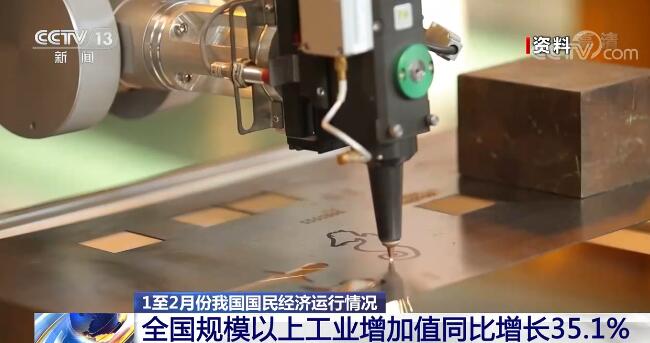 工业生产增长继续加快。1—2月份,全国规模以上工业增加值同比增长35.1%,比2019年1—2月份增长16.9%,两年平均增长8.1%,为近年来同期较高水平。其中,装备制造业和高技术制造业增势良好。