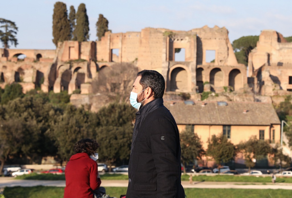 3月4日,一名男子戴着口罩走在意大利罗马街头。(新华社记者程婷婷摄)