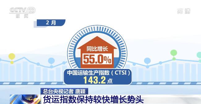 2月份,中国运输生产指数(CTSI)为143.2点,同比增长55.0%。分结构看,CTSI货运指数为179.3点,同比增长41.7%;CTSI客运指数为67.2点,同比增长151.1%,但较2019年2月仍下降59.3%。