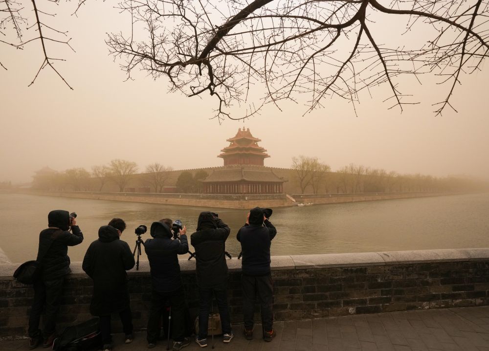 ↑3月15日,人们在拍摄故宫。新华社记者 陈晔华 摄