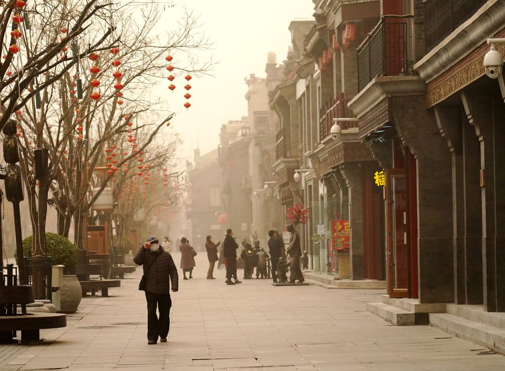 ↑3月15日,行人走在北京前门商业街。新华社记者 张晨霖 摄