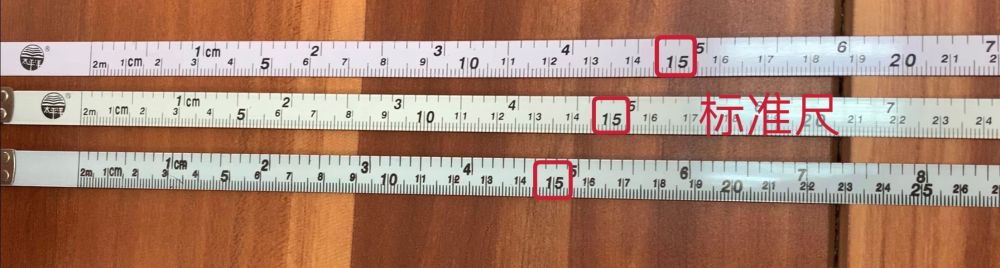 记者在网上购买的两种非标卷尺与标准卷尺的对比照。新华社记者 梁姊 摄