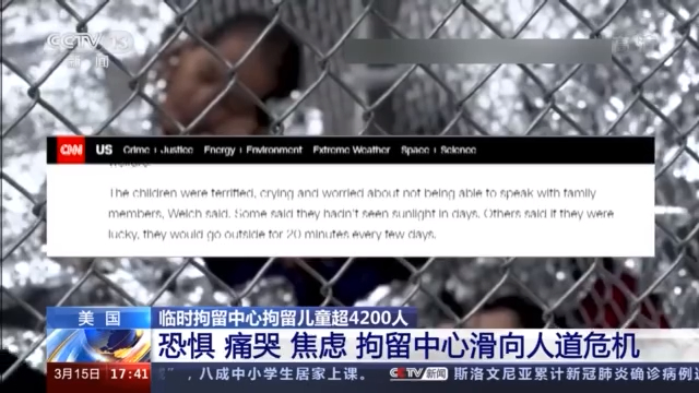 美国南部边境拘留中心拘留的大量儿童的境况令人担忧,也引发美国媒体持续关注。据美国媒体报道,截至当地时间14日上午,美国海关和边境保护局拘留了4200名无人陪同的儿童,他们挤在像监狱一样的临时拘留中心,充满恐惧和焦虑。