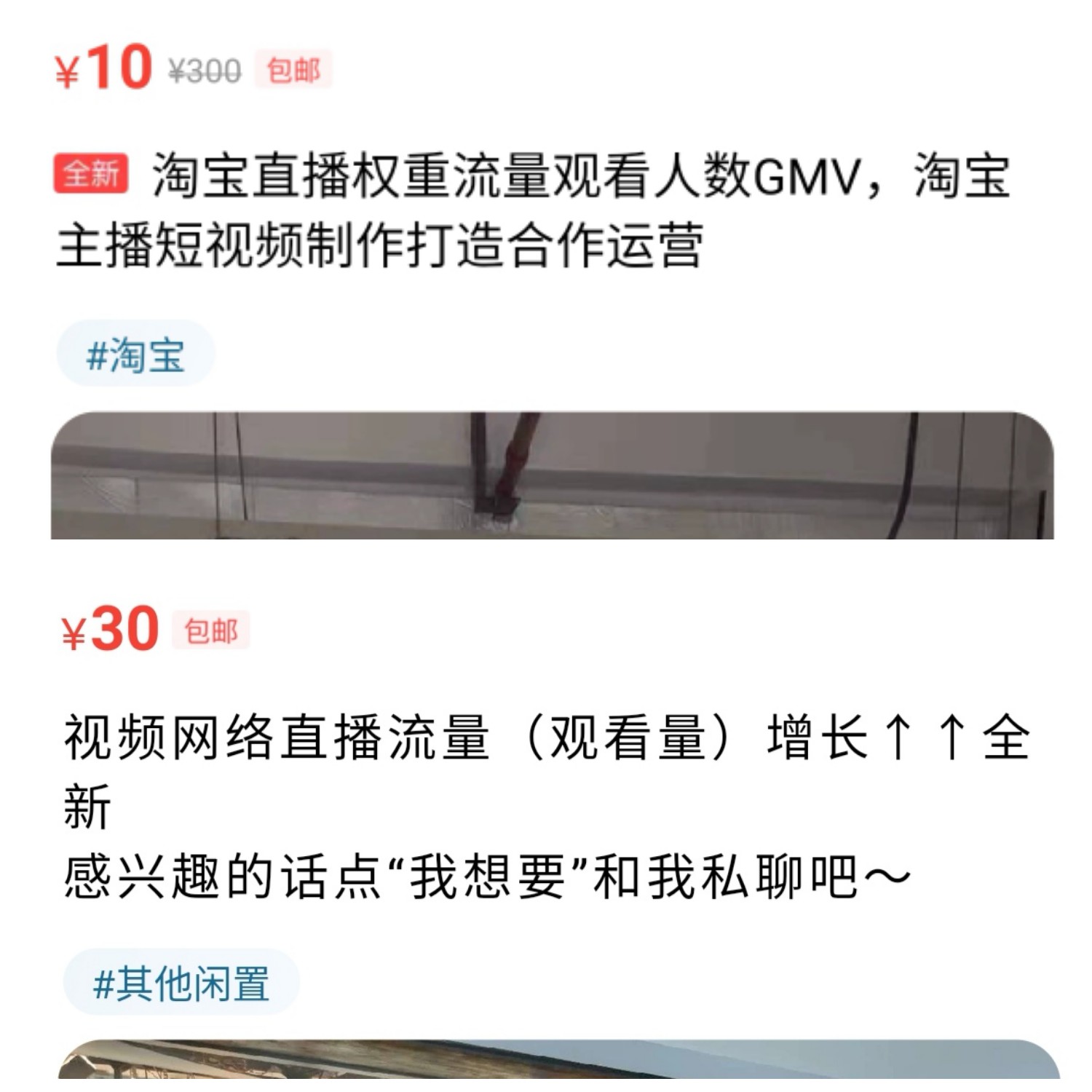 (图说:互联网二手平台上搜索“直播流量”得到的刷量服务链接)