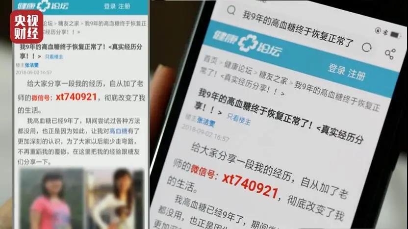点开这样的广告后,一篇标题为《我9年的高血糖终于恢复正常了,真实经历分享》的文章引起了记者注意,这位网友自称,9年里被高血糖折磨得生不如死,自从认识某老师,按照老师给的方子服用后,血糖恢复稳定,胰岛素都停用了。这篇自述文章中,网友不断地推荐这位老师,并且多次醒目地标红了老师的微信号。