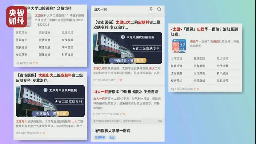 原来在搜索引擎上,公立医院的全称有相应保护机制。但这些医院的简称却可以作为关键词被其他医院用于投放广告。