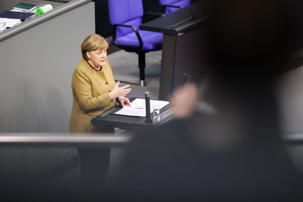 2月11日,在德国首都柏林,德国总理默克尔作政府报告。(新华社记者单宇琦摄)