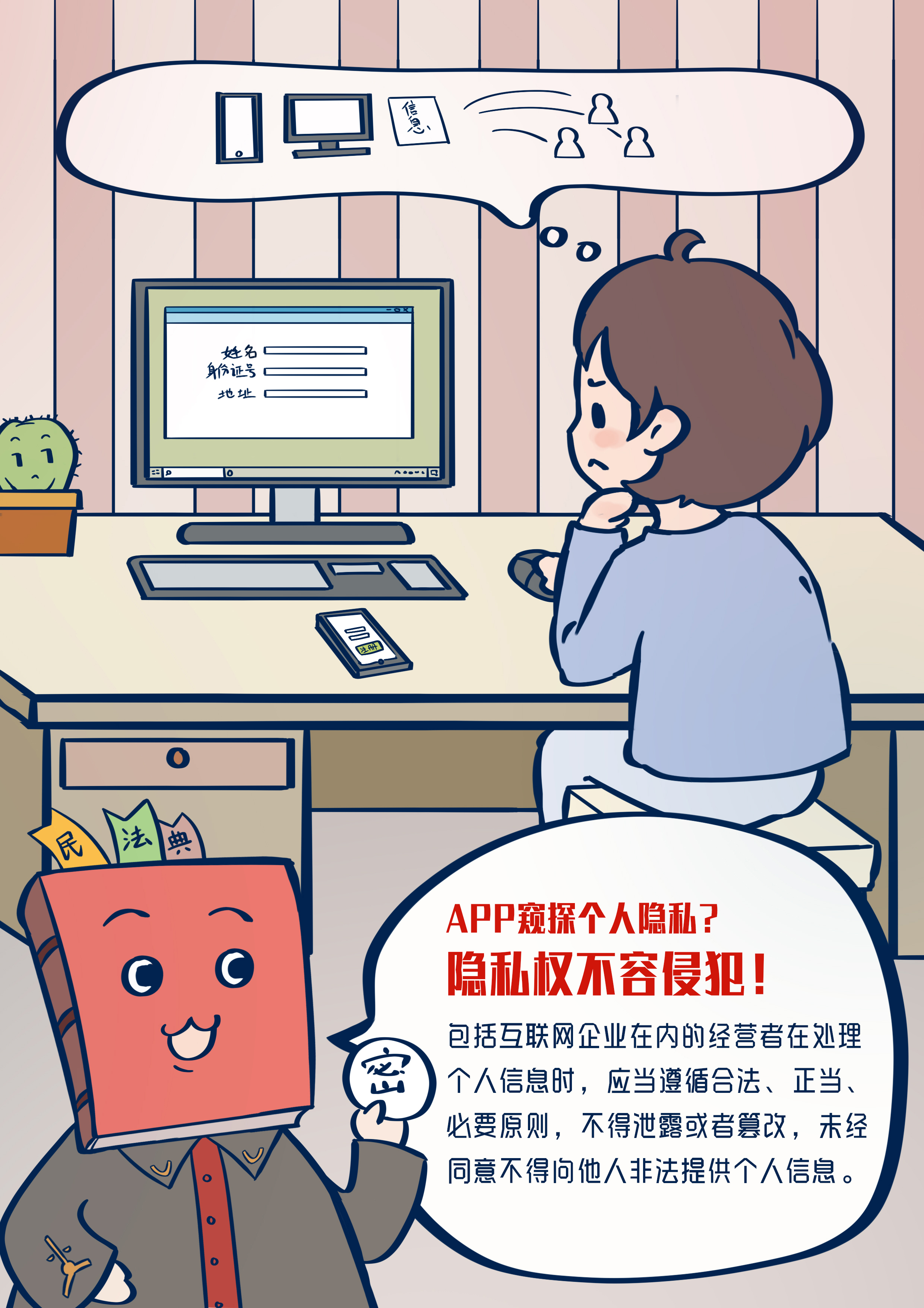 【一“典”就通】李胜利表示,民法典总则中明确“自然人的个人信息受法律保护”;后面又专门设置了“隐私权和个人信息保护”一章,其中规定,要求包括互联网企业在内的经营者在处理个人信息时,应当遵循合法、正当、必要原则,不得泄露或者篡改其收集、存储的个人信息;未经同意不得向他人非法提供个人信息。这些内容为经营者设定了法律义务,要求从源头上为每位消费者的隐私及个人信息提供保护,防止泄露。(漫画设计:陈恬雨、刘旭峰)