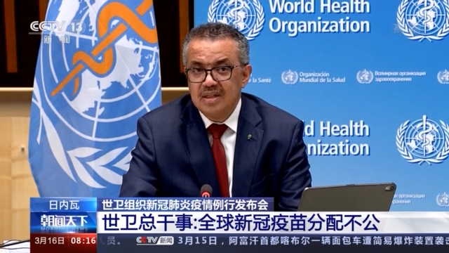 在世界卫生组织当地时间15日下午、北京时间今天凌晨举行的新冠肺炎疫情例行发布会上,世卫组织总干事谭德塞表示,目前全球范围内的新冠疫苗分配严重不公,这种状况急需改变。此外,世卫组织正密切关注阿斯利康疫苗出现的问题。