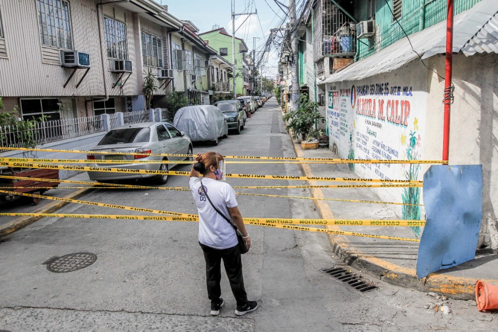 3月11日,一名居民站在菲律宾马尼拉一处封锁的街道旁。新华社发