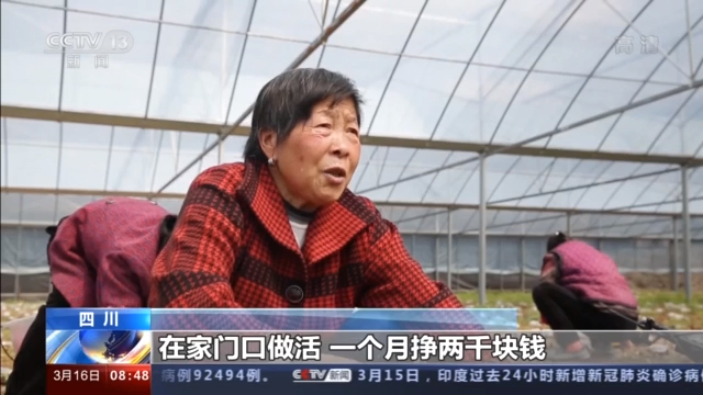 四川省广元市朝天区羊木镇兰坝村村民 贾素珍:在家门口做活,一个月挣两千块钱,还可以把家庭也照顾了。