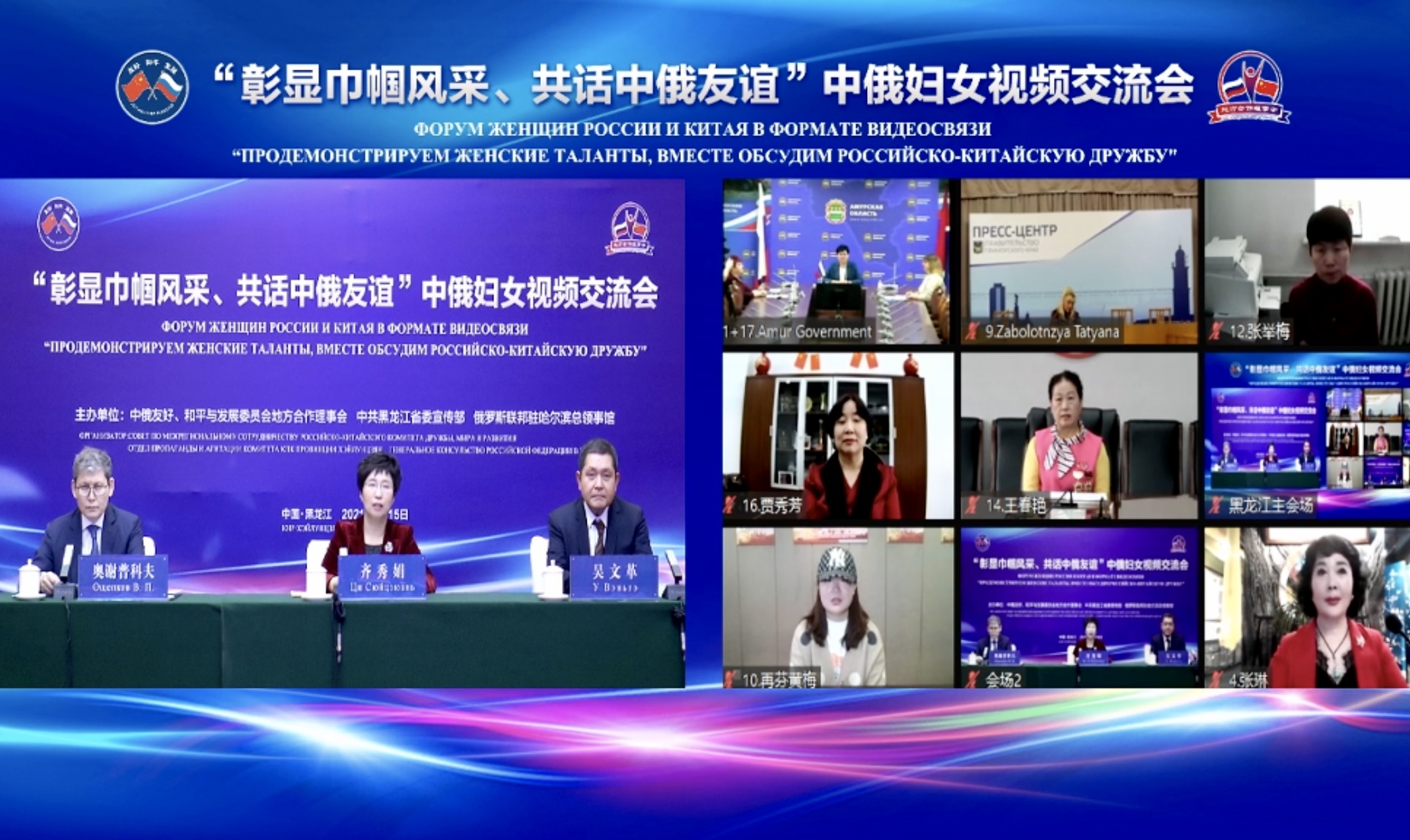 “彰显巾帼风采、共话中俄友谊”中俄妇女视频交流会现场。 (视频截图)